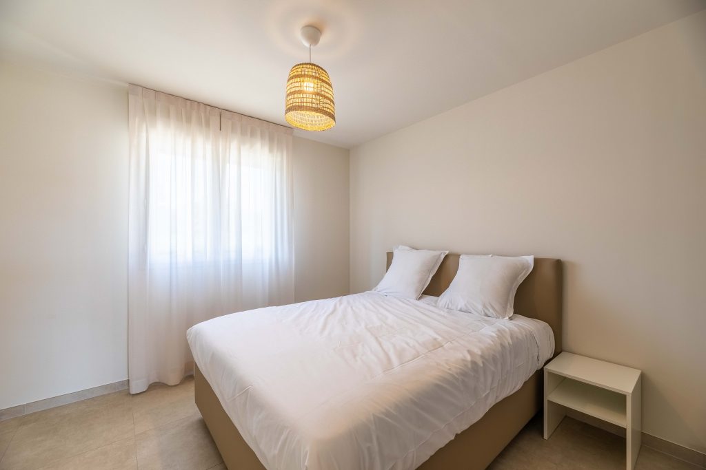 Pour chaque logement les salles de bains sont entièrement aménagées, et les chambres profitent de beaux espaces de rangement. La résidence, sécurisée et cloturée, offre des parkings extérieurs et des bornes électriques. Toute la résidence profite d’un calme absolu, d’une proximité immédiate à la mer dans un quartier recherché de Cervione.